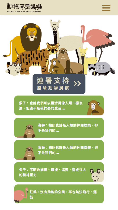 動保理念宣傳主題專頁設計/切版/插圖繪製